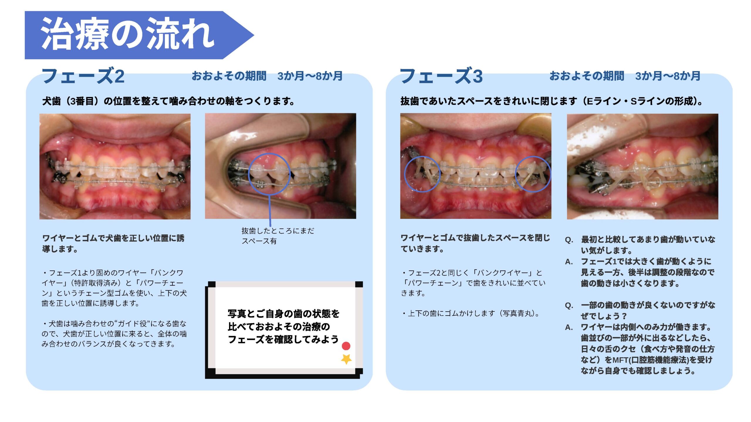 一期治療は顎の拡大を行い、歯の並ぶスペースを確保します。一方二期治療は成人矯正と同じ手法で行います。