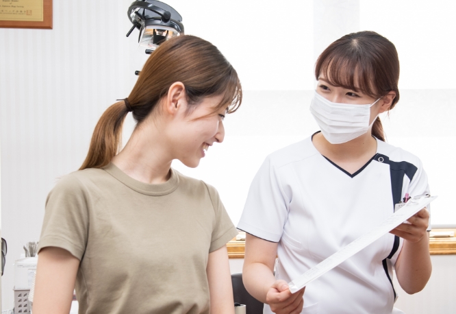 簡単な検査を行うとともに、ご記入いただいた調査事項用紙をもとに患者さまお一人おひとりの歯科矯正のおおまかな進め方やリスクをご説明いたします。