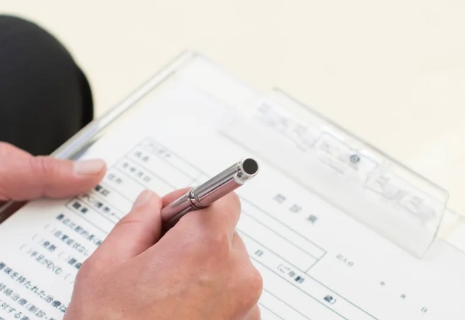 初診申込用紙に個人情報や歯並びの状況を記入後、調査事項用紙の質問にご回答いただきます。一見関係のない内容も含まれますが、総合的な判断により、安全でリスクの少ない診察を行うための重要な資料です。